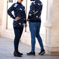 ست بافت زنانه و مردانه مدل Felin (سورمه ای)