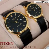 ست ساعت مچی مردانه و زنانه Citizen مدل Piget ( طلایی)