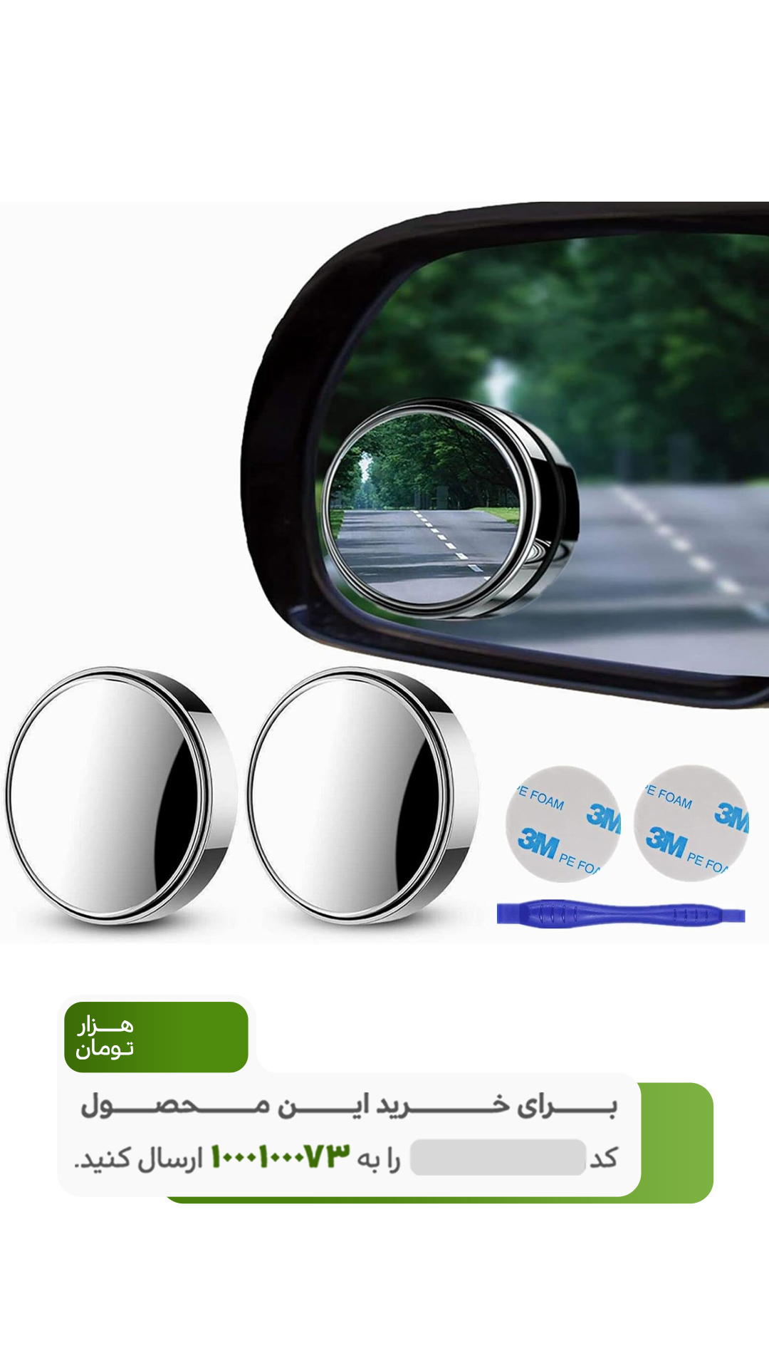 آینه نقطه کور ماشین کد 6036 مناسب برای تمامی خودروها مشخصات آینه محدب ساخته شده از جنس شیشه با وضوح بالا روکش استیل ضد زنگ دارای چسب دو طرفه قوی و ضد آب افزایش زاویه دید سهولت در پارک خودرو