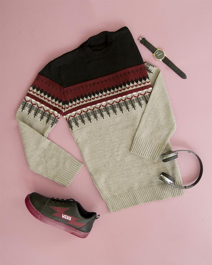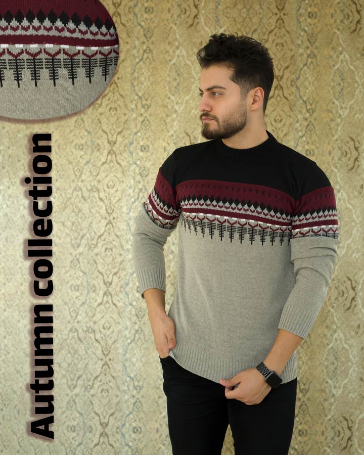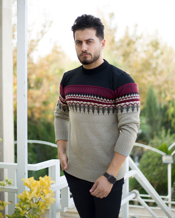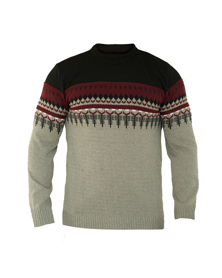 بافت مردانه efor طرح دار دارای استین های بلند و یقه گرد میباشد.در سایز بندی فری سایز ارائه میشود و در قسمت سر استین ها و پایین لباس دارای کش بافت است.