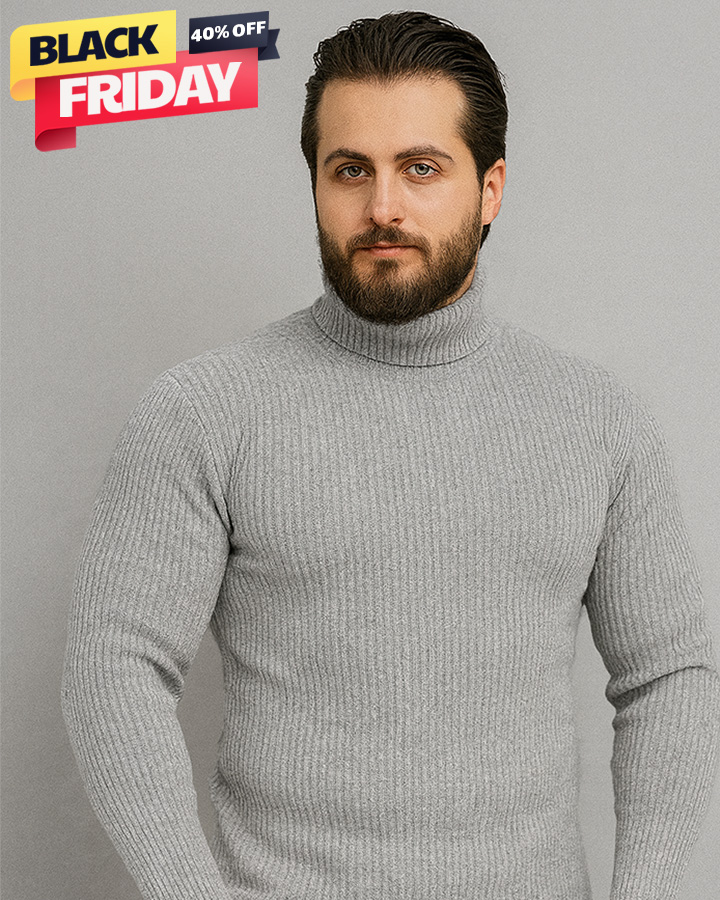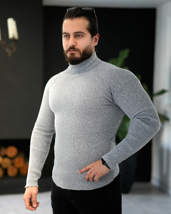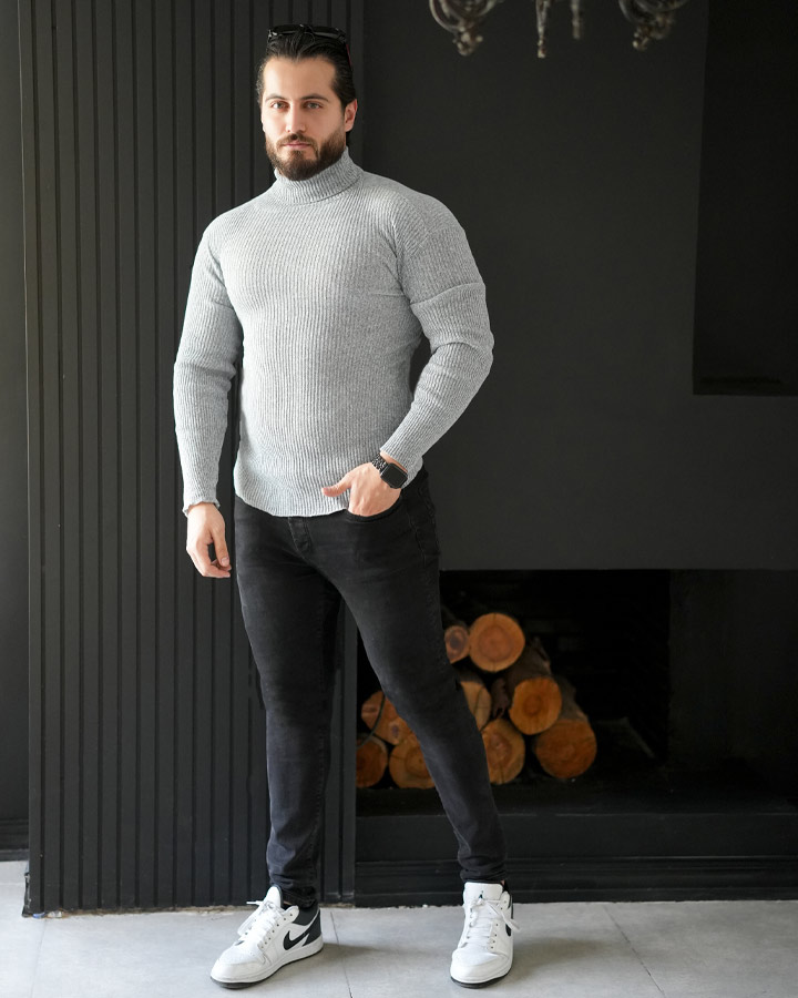 با پلیور یقه اسکی مردانه طوسی، تلفیقی از ظرافت، سادگی و اعتمادبهنفس را تجربه کنید.