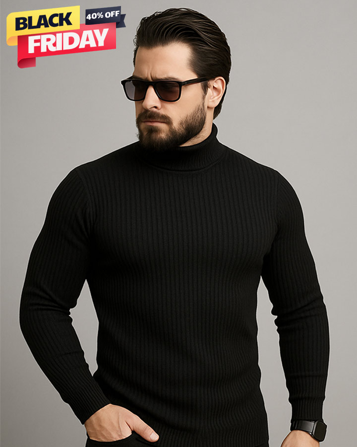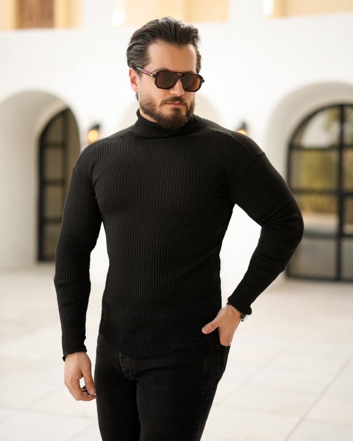 با پلیور یقه اسکی مردانه مشکی، تلفیقی از ظرافت، سادگی و اعتمادبهنفس را تجربه کنید.