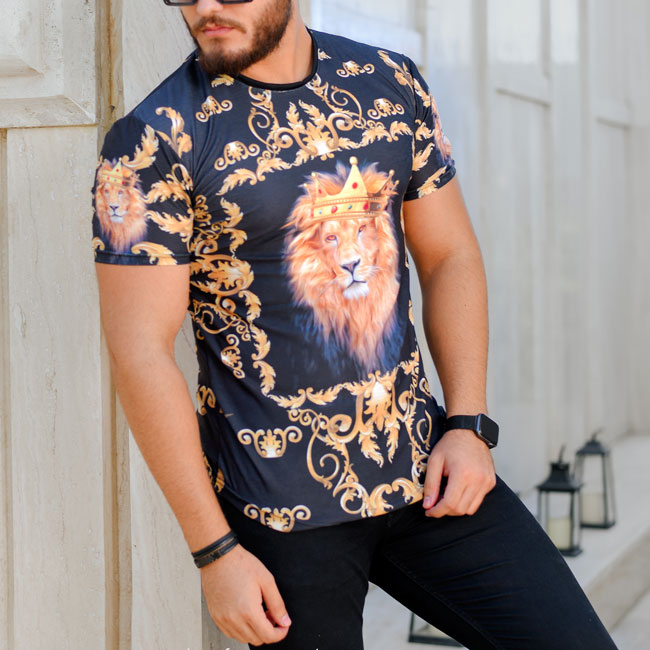 تیشرت این ست دارای آستین های کوتاه بوده و از قد متوسط 20 سانتی متری برخوردار می باشد. تیشرت king lion فری سایز بوده که برای سایزهای لارج و ایکس لارج مناسب می باشد.