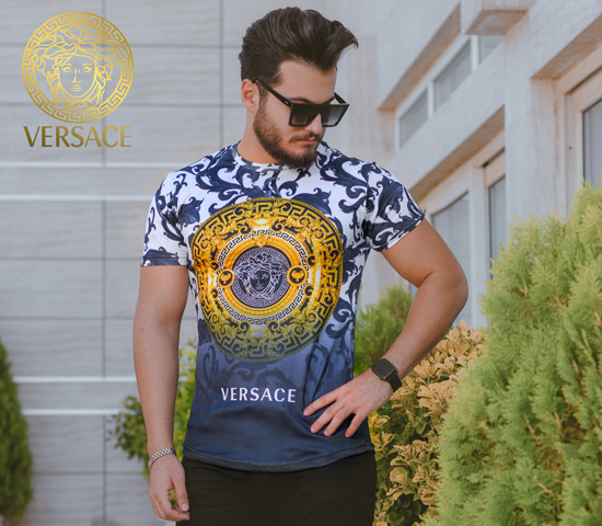تیشرت این ست دارای آستین های کوتاه بوده و از قد متوسط 19 سانتی متری برخوردار می باشد. تیشرت VERSACE فری سایز بوده که برای سایزهای لارج و ایکس لارج مناسب می باشد.