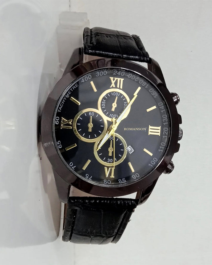 ساعت مچی عقربه ای رومانسون ، با طراحی چشمگیر، همه را به سمت خود کشانده است. همچنین این ساعت.دارای تاریخ شمار میباشد که میتواند روزهای ماه را برای شما به نمایش درآورد. صفحهی ساعت سه موتوره طراحی شده و همین چشم همه را به سمت خود خیره کرده است. کیفیت قاب از استیل بسیار مرغوب طراحی گردیده است و همچنین دارای بند چرم مصنوعی با کیفیت میباشد.