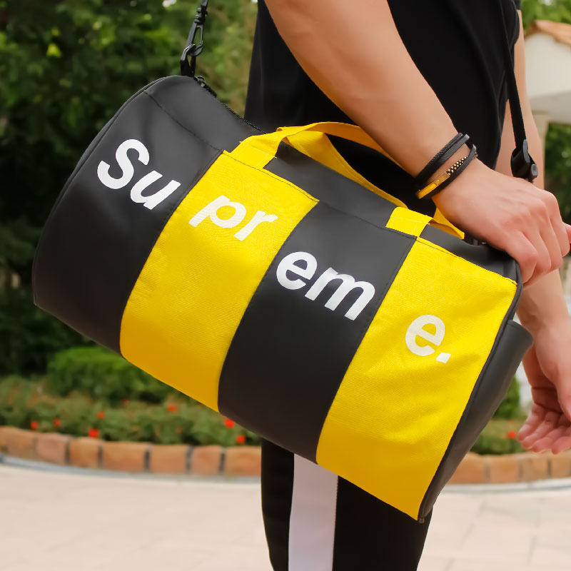 ساک ورزشی مدل Supreme (مشکی زرد)جنس چرم مصنوعی باکیفیتمناسب برای باشگاه