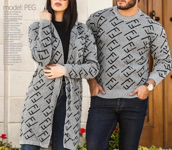 ست بافت زنانه و مردانه مدل Peg (طوسی)