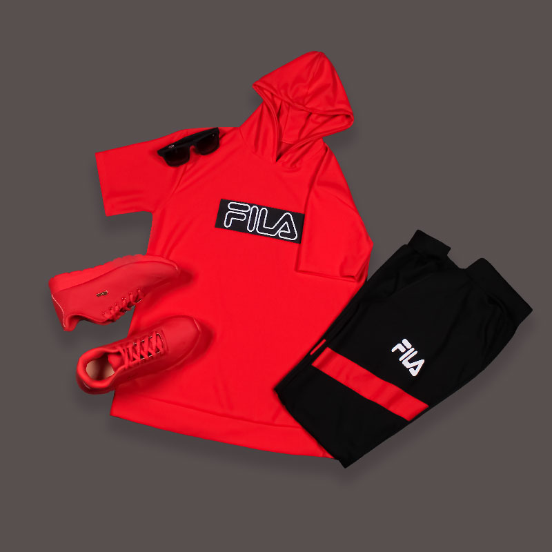 ست تیشرت شلوار کلاه دار Fila مدل chikom (قرمز)