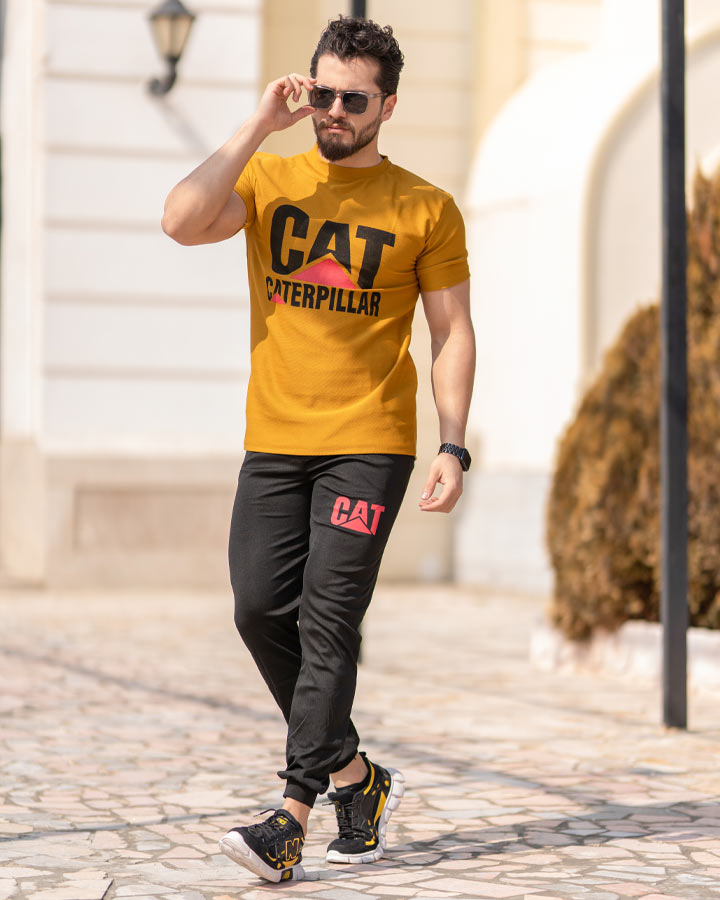 ست تیشرت شلوار CAT مدل Erpillar (زرد)