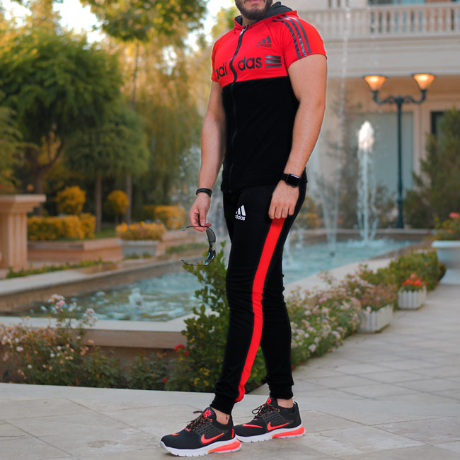 ست تیشرت و شلوار زیپ دار Adidas مدل Kaliz (قرمز)
