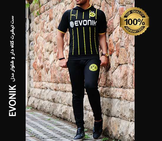 ست سویشرت و شلوار EVONIK متشکل از یک سویشرت و یک شلوار بوده می باشد .تیشرت این ست دارای آستین های کوتاه و کلاه بوده و از قد متوسط 68 سانتی متری برخوردار می باشد.شلوار این ست نیز دارای کمر کشی پهن می باشد و از قد شلوار 100 و فاق 32 سانتی متری برخوردار است.ست سویشرت و شلوارEVONIK فری سایز بوده که برای سایزهای لارج و ایکس لارج مناسب می باشد.