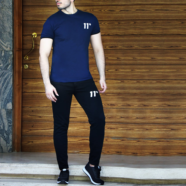 ست تیشرت و شلوار 11متشکل از یک تیشرت و یک شلوار بوده می باشد .تیشرت این ست دارای آستین های کوتاه بوده و از قد متوسط 72 سانتی متری برخوردار می باشد.شلوار این ست نیز دارای کمر کشی پهن می باشد و از قد شلوار 100 و فاق 30 سانتی متری برخوردار است.ست تیشرت و شلوار11 فری سایز بوده که برای سایزهای لارج و ایکس لارج مناسب می باشد.