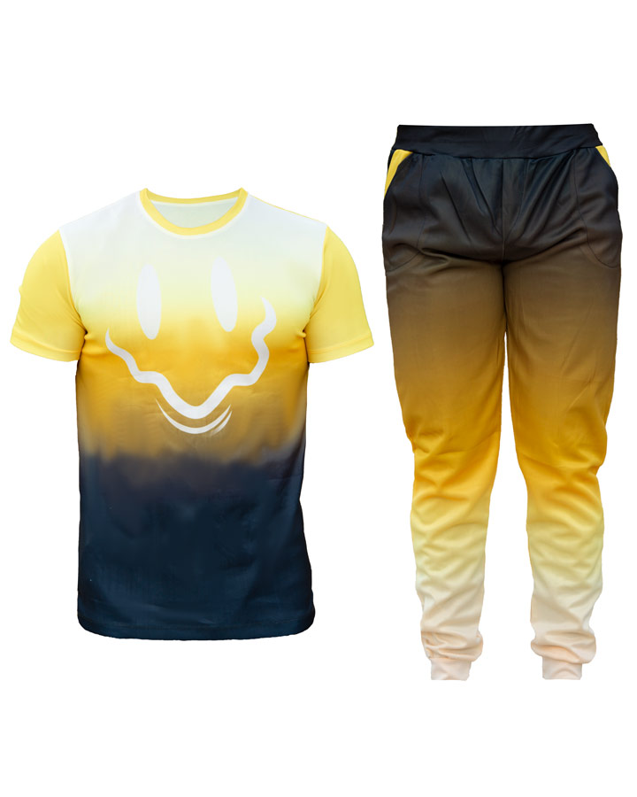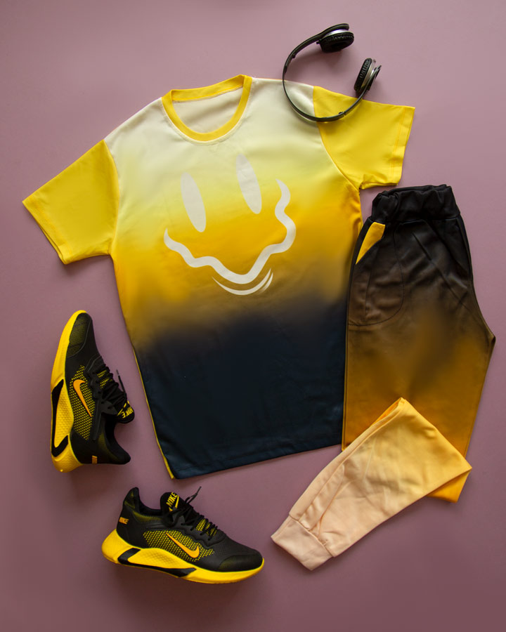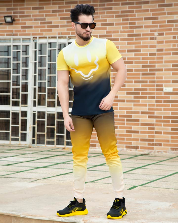 ست تیشرت و شلوار مردانه مدل Face (زرد)
