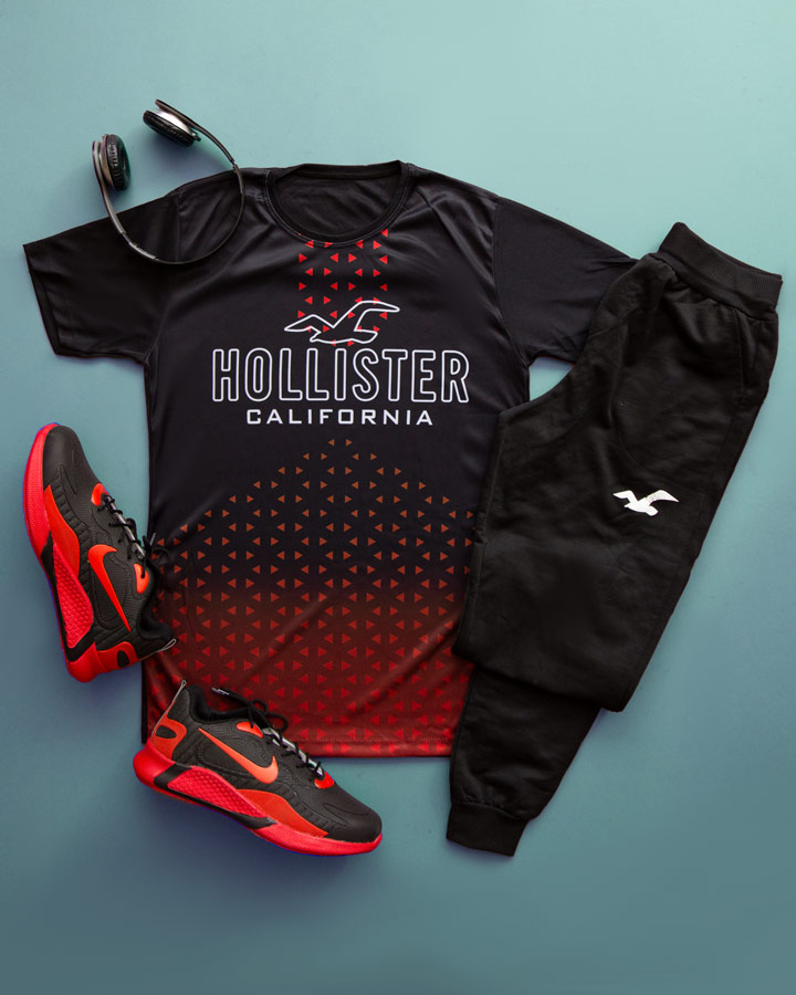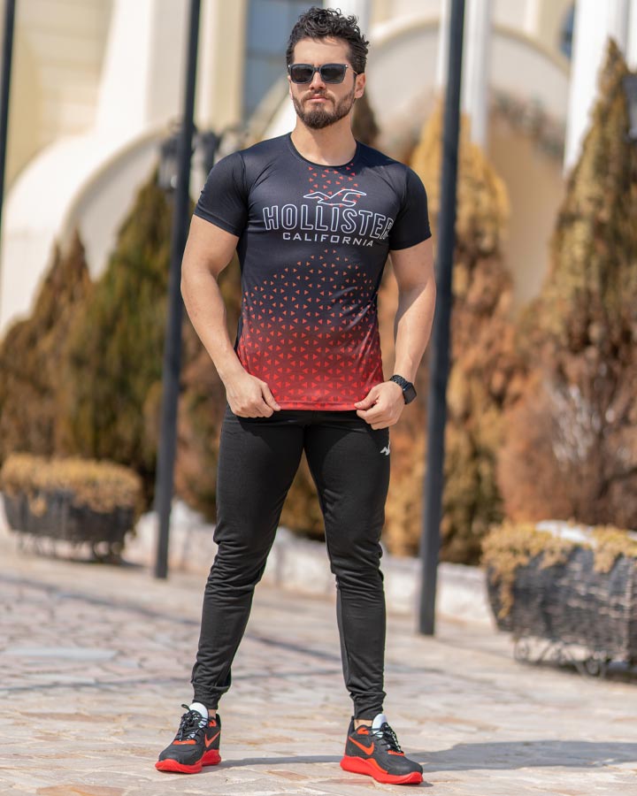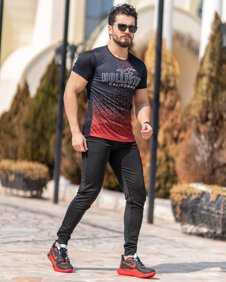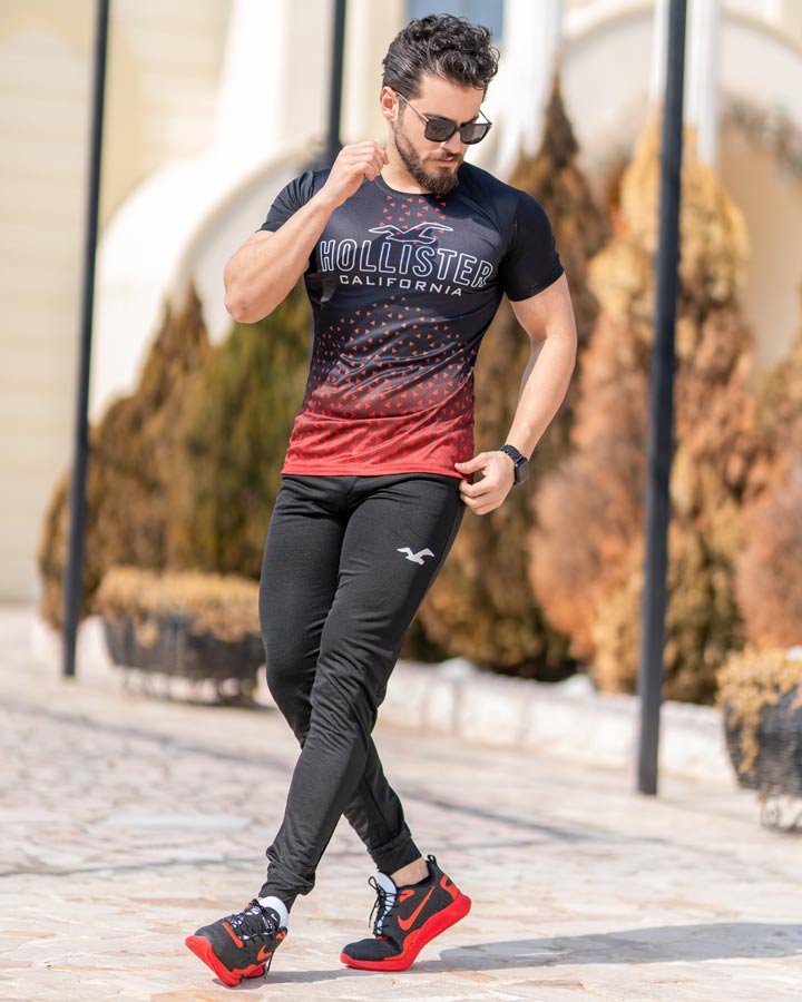 ست تیشرت و شلوار مردانه مدل HOLLISTER (قرمز)