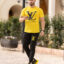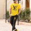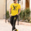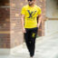 ست تیشرت و شلوار مردانه در رنگ بندی زرد و مشکی با چاپ برند LV روی تیشرت ارائه شده است.تیشرت دارای استین های کوتاه و جنس اسپان دارای الیاف سبک و مناسب فصل گرما میباشد.شلوار این ست به رنگ مشکی و با جنس ملانژ با الیافی انعطاف پذیر است.