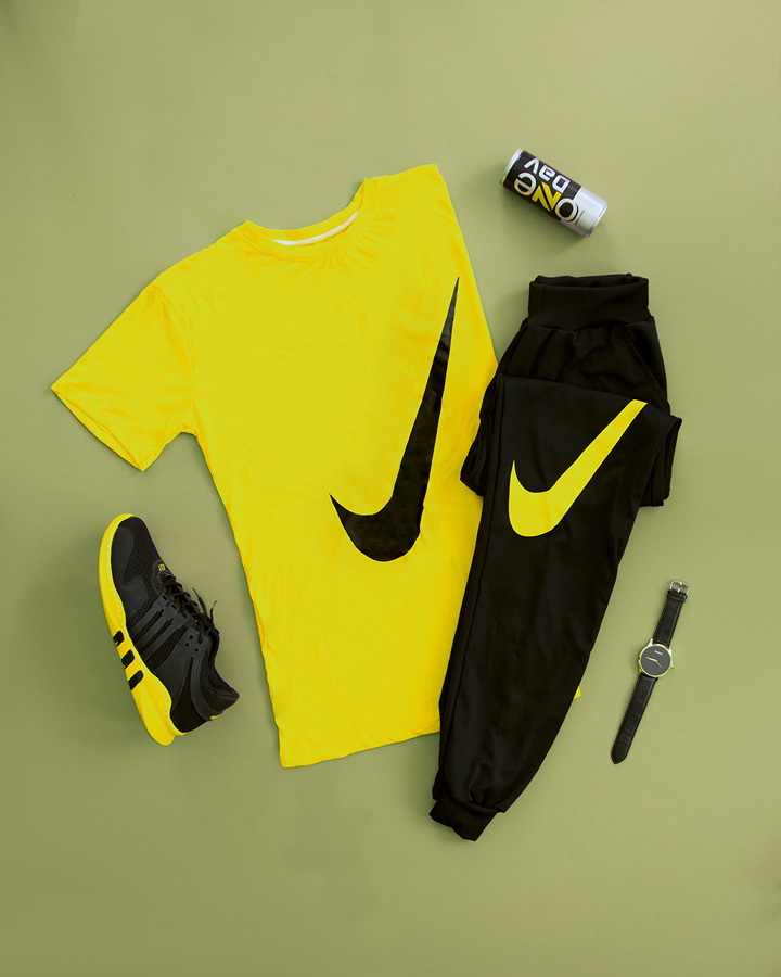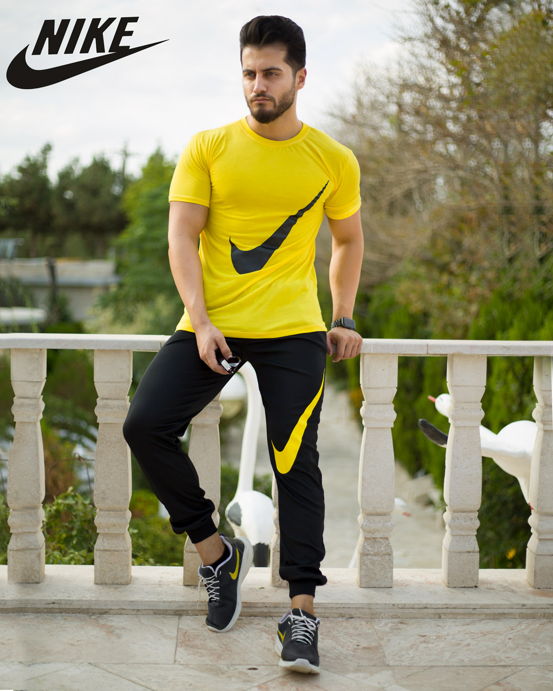 ست تیشرت و شلوار Nike مدل calin در رنگ بندی زرد و مشکی مناسب برای استایل اسپرت و روزمره،با افتخار تولید ایران بوده، جنس تیشرت اسپان ک بسیار خنک است و جنس شلوار ملانژ که از کشسانی عالی برخورد میباشد.طراحی این محصول مشابه بروزترین مدل های خارجی است.