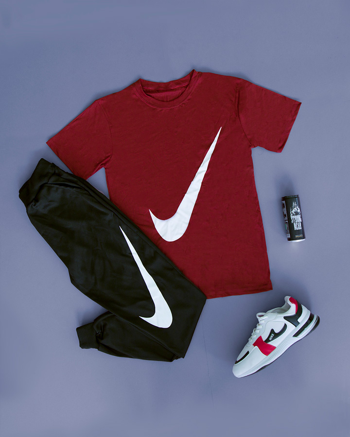 ست تیشرت و شلوار nike مدل calin (زرشکی)