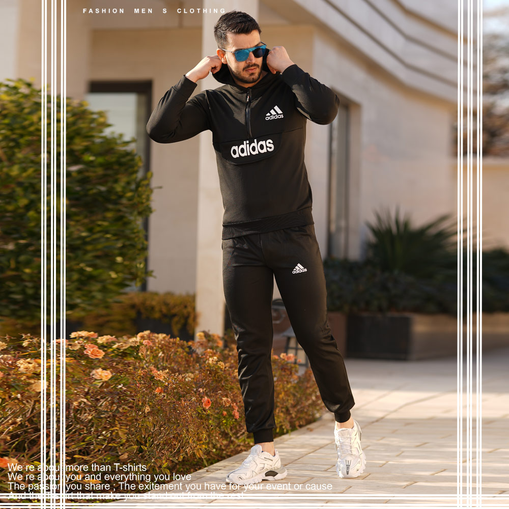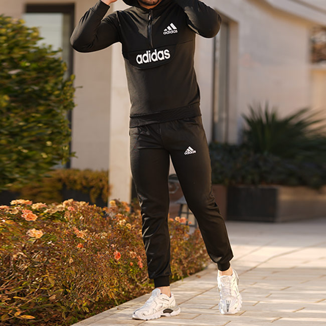 ست سویشرت وشلوار نیم زیپ adidasمدل silence(مشکی)