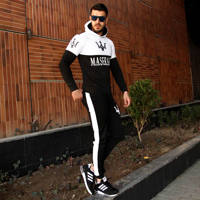 ست سویشرت و شلوار مردانه Maserati( مشکی سفید)