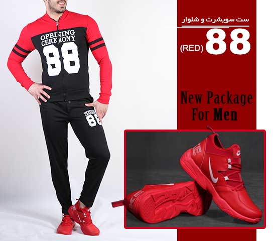 ست سویشرت و شلوار 88 (red) و کفش مردانه Nike مدل Sergio