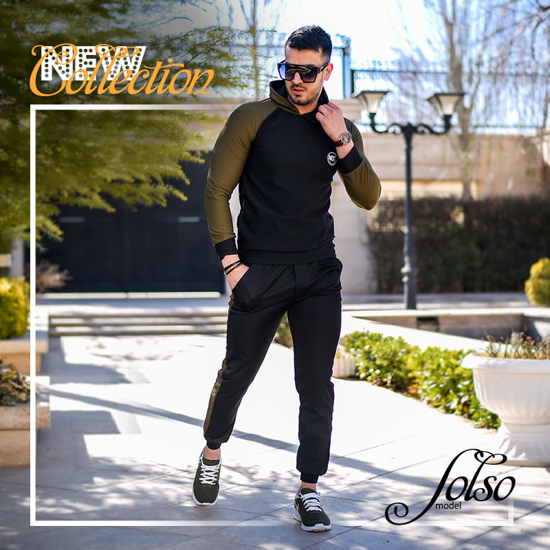 ست سویشرت و شلوار مردانه مدلSolso (مشکی سبز)