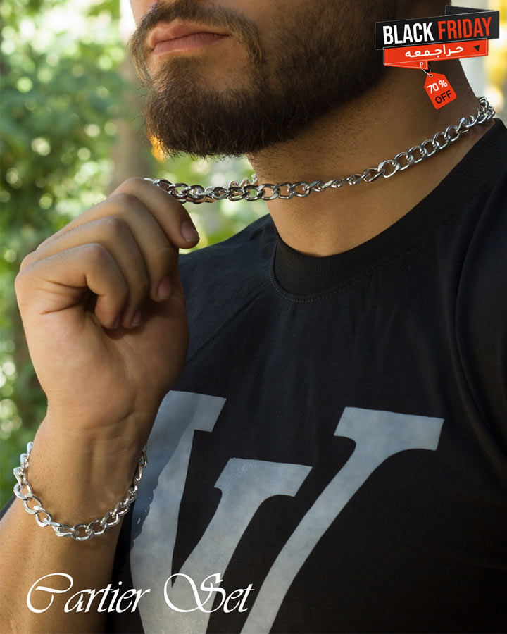 ست گردنبند و دستبند Cartier مدل zar (نقره ای)