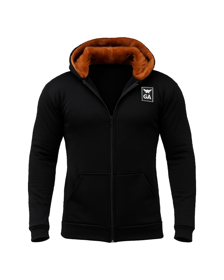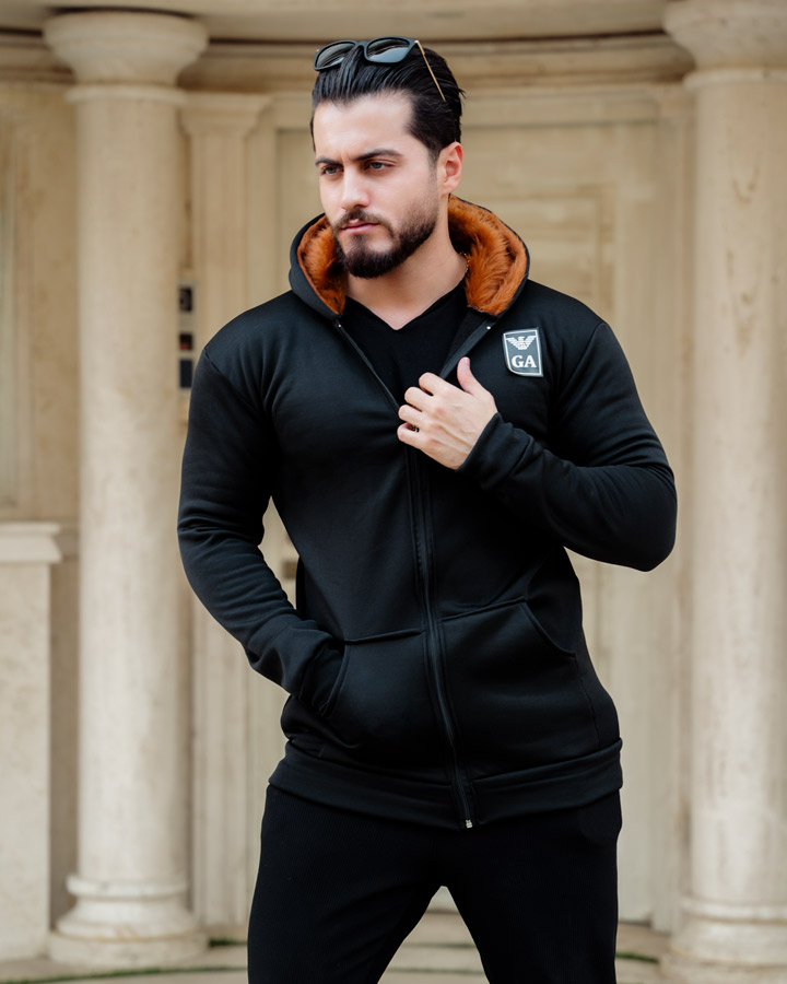 هودی خزدار مردانه   ARIYAN از الیافت درجه ی یک طراحی و ساخته شده است و در رنگ بندی تیره موجود می باشد.