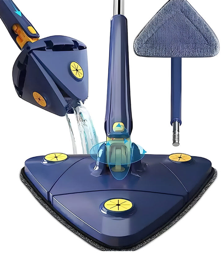 تی مثلثی تاشو با قابلیت چرخش 360 درجه آسان و آبگیری دستی برای تمیز کردن وان، سطوح توالت، حمام ، آینه، شیشه، سقف و غیره استفاده می شود. دسته بلند تی برای تمیز کردن و گردگیری سقف و دیوار مناسب است و نیاز به بالا رفتن از چهارپایه یا خم شدن برای نظافت کف نمی باشد.