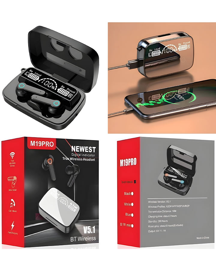 اگر به دنبال هدفون بیسیم جمعوجور هستید، M19 PRO V5.3 یکی از گزینههایتان است. این مدل برخلاف ایرپاد بهصورت کامل در گوشتان قرار میگیرد. این محصول دارای محفظه با ابعاد استانداردی است و بهآسانی در جیب و کیفتان جای میگیرد. محفظه شارژ مجهز به باتری قدرتمند 3500mAh است که تا ساعت ها میتوانید از آن استفاده کنید یا به عنوان پاوربانک برای شارژ گوشی بهره ببرید. همچنین این محفظه دارای نشانگر LED زیبا برای نمایش میزان شارژ محفظه و هریک از گوشی هاست. اتصال این هدفون به گوشی از طریق بلوتوث امکانپذیر است. برای این محصول بلوتوث نسخه 5 تعبیهشده تا برقراری ارتباط کیفیت بالایی داشته باشد.فاصله اتصال 10 متری ، عملکرد پایدار ، انتقال زیاد ، مصرف کم و سازگاری قوی را به شما اراءه میدهد