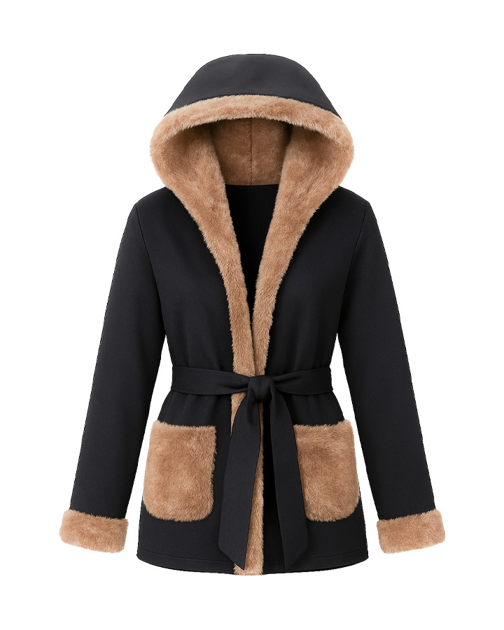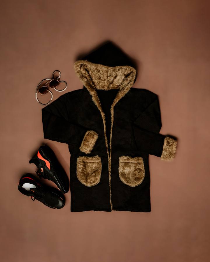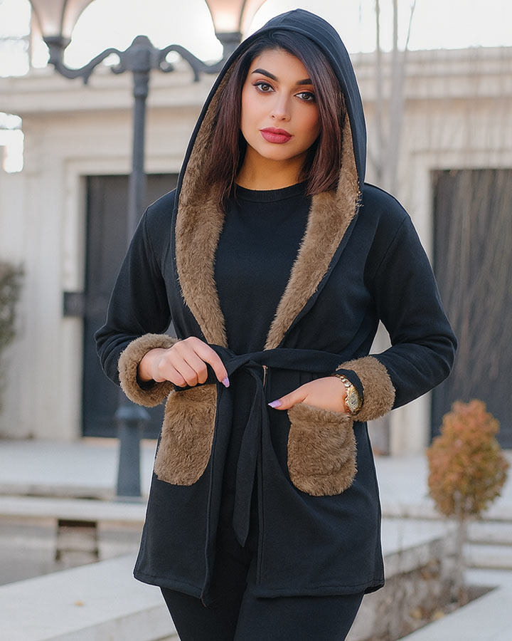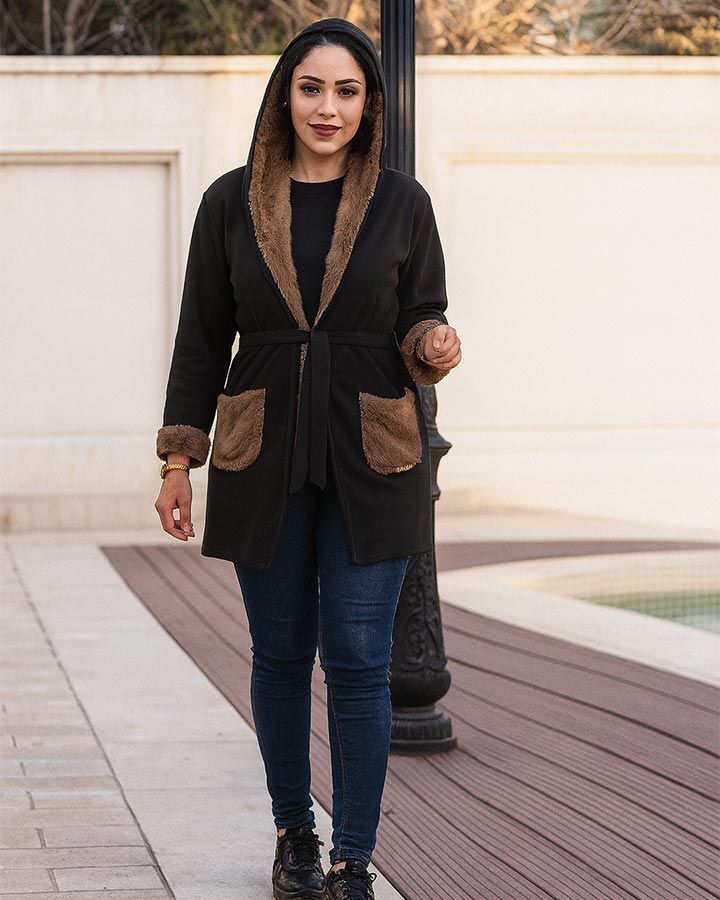 هودی تمام خزAngela از الیافت درجه ی یک طراحی و ساخته شده است و در رنگ بندی تیره موجود می باشد.