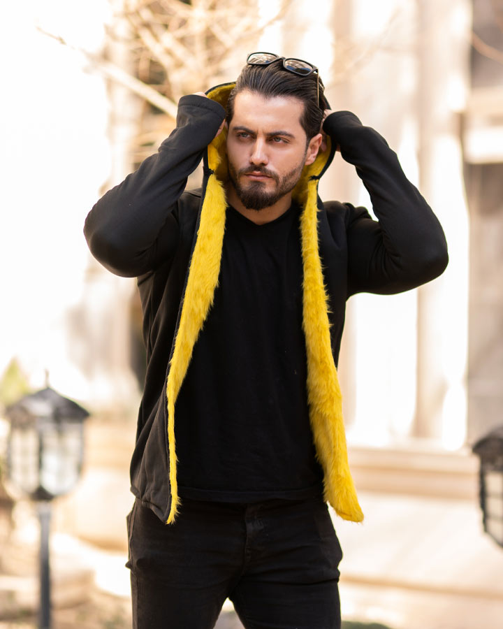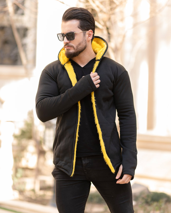 هودی مردانه لبه خز مدل Lazar (زرد)