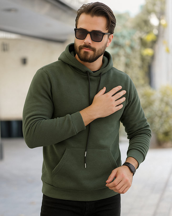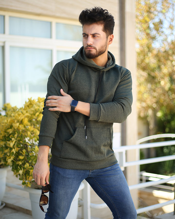 هودی مردانه کلاه دار مدل Icon (سبز لجنی )