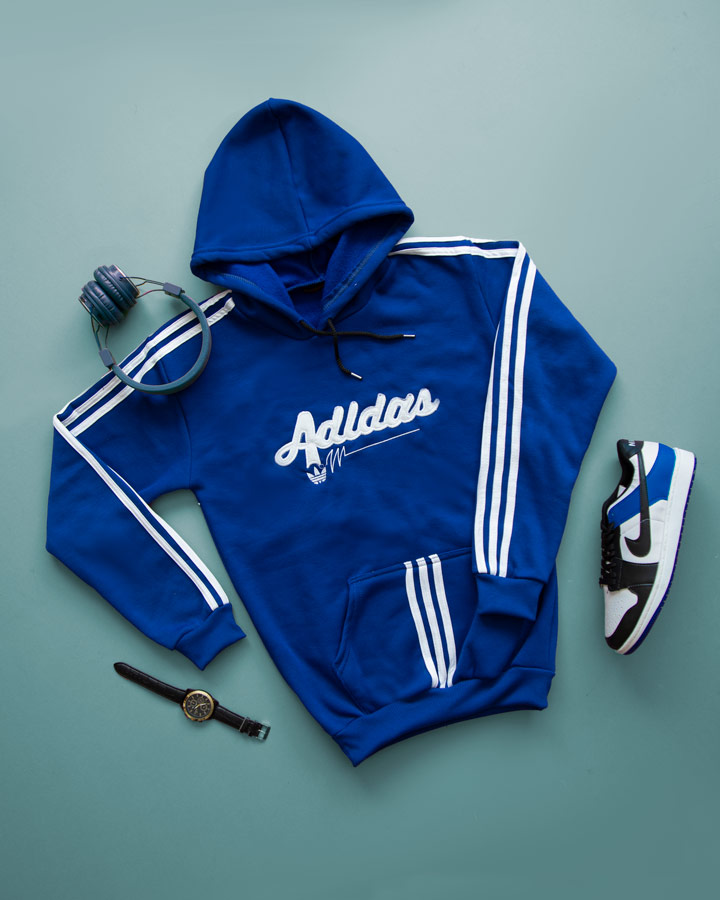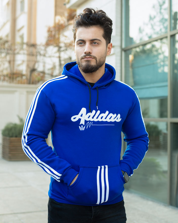 هودی مردانه با رنگ ابی دارای کش بافت در سر استین ها و پایین لباس است و جنس ان دورس تو کرک میباشد. این محصول کلاه دار و در سایز لارج و ایکس لارج تولید شده است.