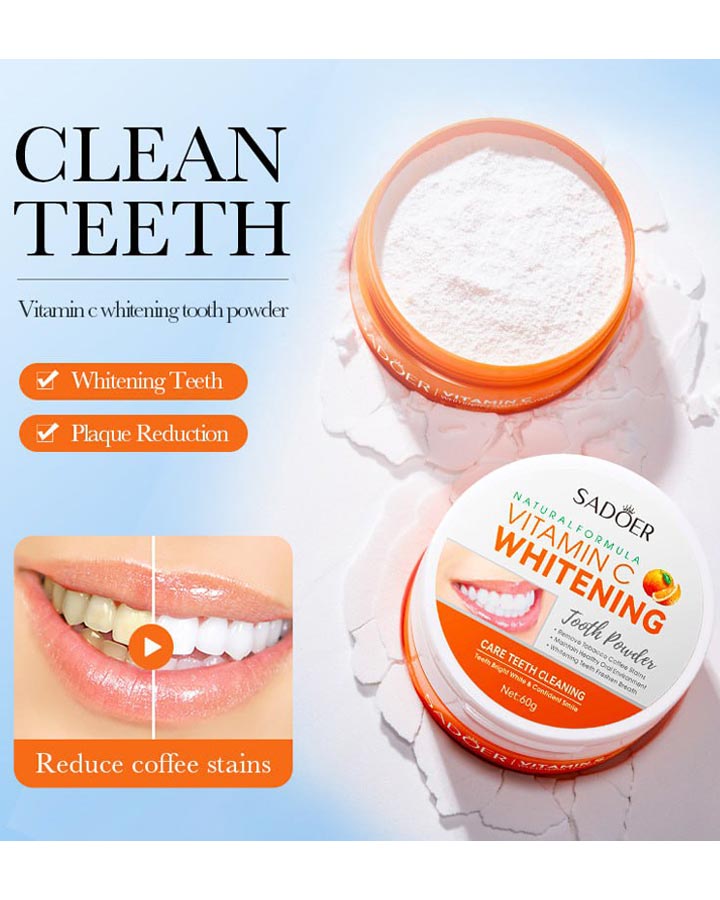 یکی از این محصولات، پودر سفید کننده دندان ویتامین سی است