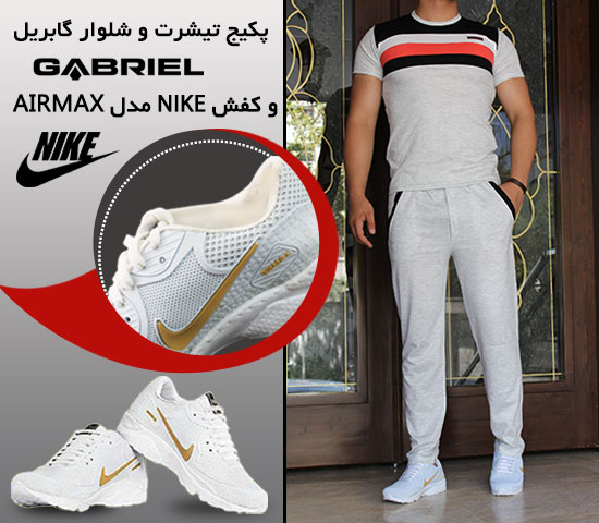 پکیج تیشرت و شلوار گابریل و کفش NIKE مدل AIRMAX White