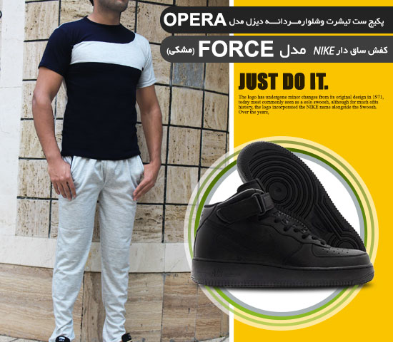 پکیج ست تیشرت وشلوارمـــردانــــه دیزل مدل opera و کفش ساق دار nike مدل force ( مشکی)