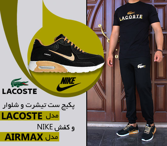 پکیج ست تیشرت وشلوار مدلLACOSTE وکفشNIKEمدل AIRMAX Black