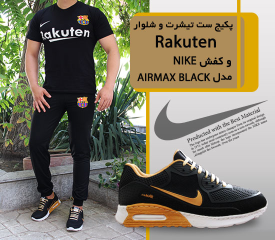 پکیج ست تیشرت و شلوار مدل Rakuten و کفش NIKE مدل AIRMAX BLACK
