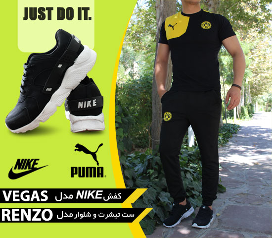 ست تیشرت و شلوار مدل RENZO و کفش NIKE مدل VEGAS