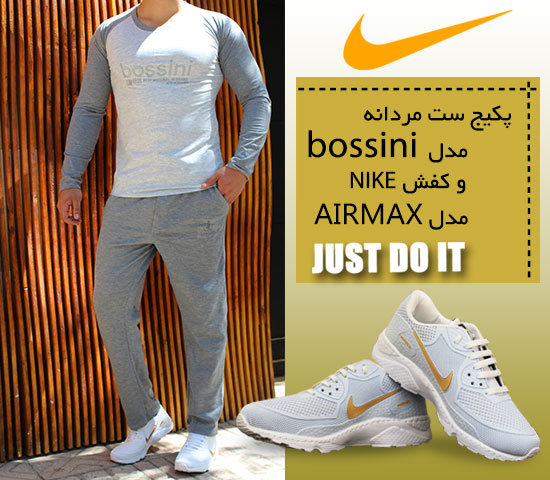 پکیج ست مردانه مدل bossini و کفش NIKE مدل AIRMAX White