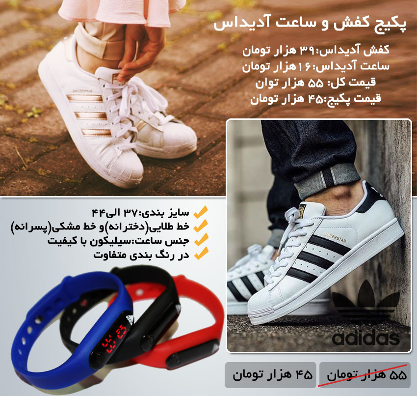 7 روز گارانتی بازگشت وجهپکیج کفش و ساعت Adidas