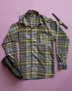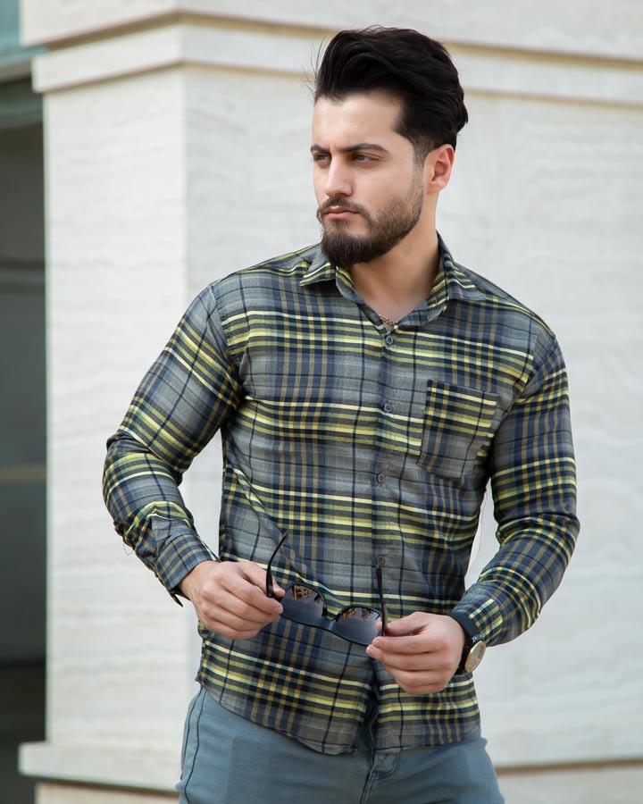 پیراهن مردانه مدل Liverji (طوسی زرد)