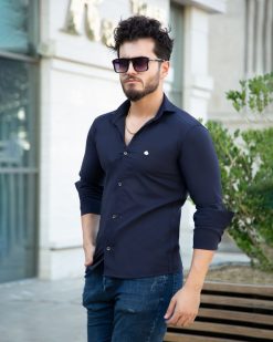 پیراهن مردانه مدل zivip در رنگ بندی سورمه ای با کیفیت دوخت بالا و از جنس پنبه پلی استر قیمت باورنکردنی بهترین انتخاب برای استایل های رسمی با استفاده از این ایتم جذاب زیباتر شوید