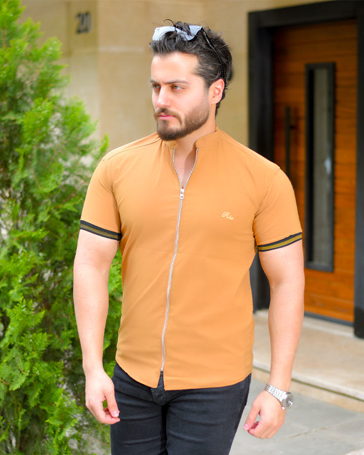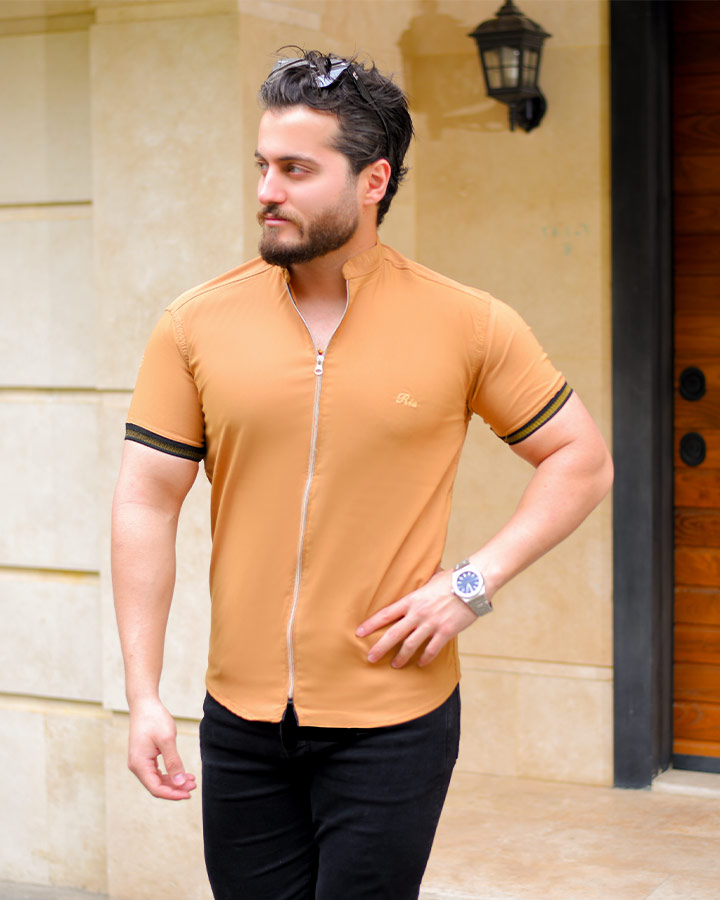 پیراهن نیم آستین مردانه مدل soprx(کرمی) کد6306