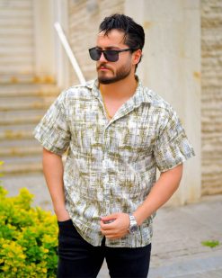 پیراهن نیم استین مردانه مدل Vojak (سفید قهوای) کد 6315