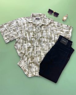 • ☑️ پیراهن نیم آستین Vojak(سفید قهوه ای)کد6315