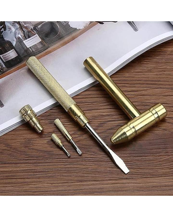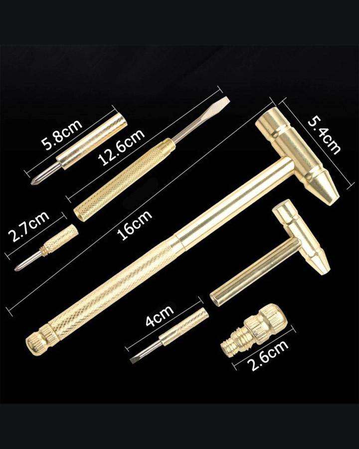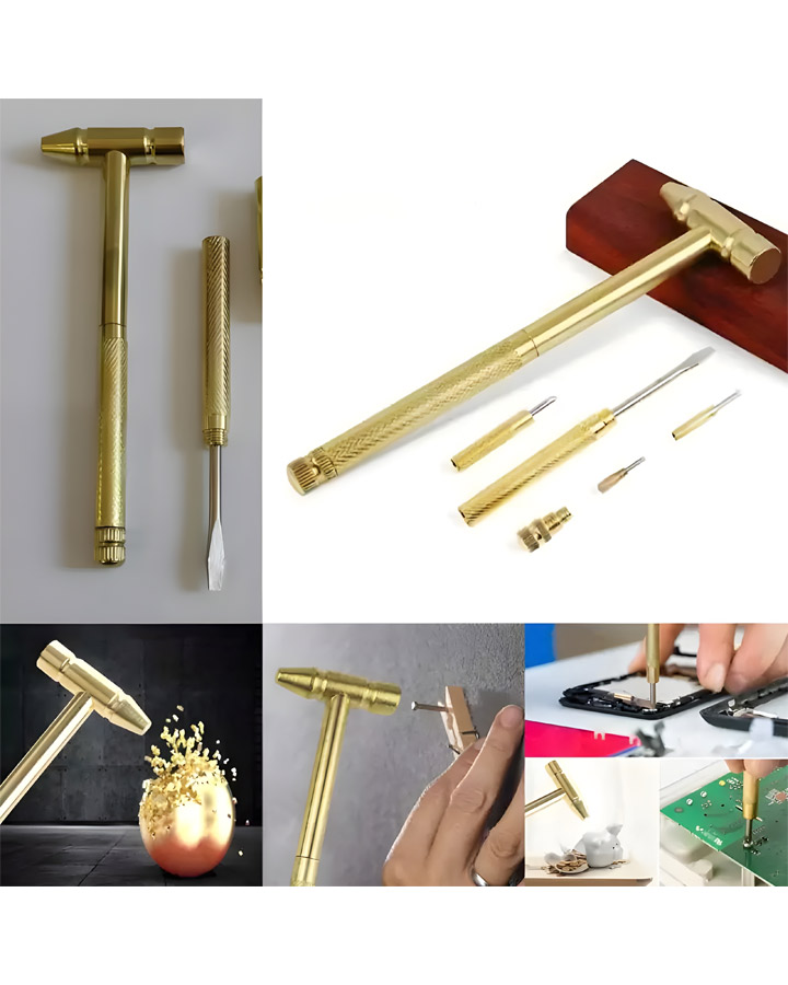 این ابزار در حالت معمول یک مینی چکش با طول کلی 16 سانتی متر همراه با سری 5.4 سانتیمتری می باشد که با توجه به فلزی بودن جنس کالا می توانید برای کارهای سبک مانند زدن میخ از آن استفاده کنید. کافی است انتهای دسته چکش را به صورت پیچی باز کنید تا شاهد بیرون آمدن یک پیچ گوشتی دو سو باشید که متناسب با نیاز می توانید از آن بهره ببرید، اگر به یک پیچ گوشتی چهار سو نیاز دارید، کافیست انتهای پیچ گوشتی دو سو را نیز باز کنید تا این پیچ گوشتی خارج و در اختیار شما برای استفاده قرار گیرد.
