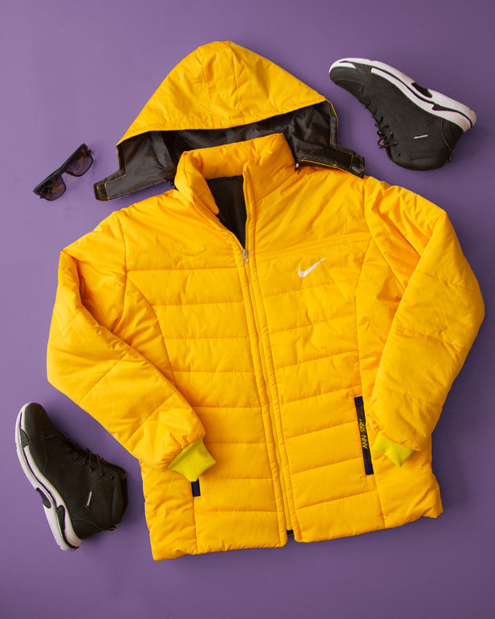 کاپشن مردانه Nike در رنگ بندی زرد و سایز فری تولید شده که برای سایزهای لارج و ایکس لارج مناسب است.سر استین های این کاپشن دارای کش بافت بوده و مانع از نفوذ سرما میشود.این محصول استر دار بوده و دارای یک لایه پشم شیشه مباشد و بسیار گرم و راحت است
