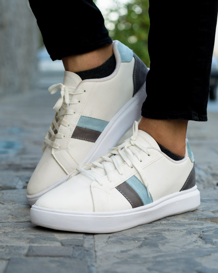 کفش مردانه مدل SD.WHITE در رنگ سفید سه خط در سایز های 41 تا 44 تولید شده است.زیره این کفش به دلیل قابلیت ارتجاعی که دارد باعث راحتی در امر راه رفتن شده و رویه فوم آن به دلیل نرم بودن باعث راحتی پا میشود.نحوه ی بسته شدن این کفش بندی است.