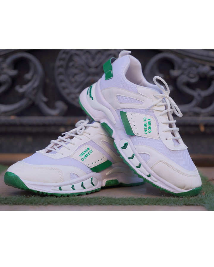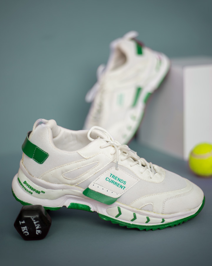 کفش مردانه Fashion مدل Trends تولید شده در رنگ سفید سبز مناسب پیاده روی و ورزش است.